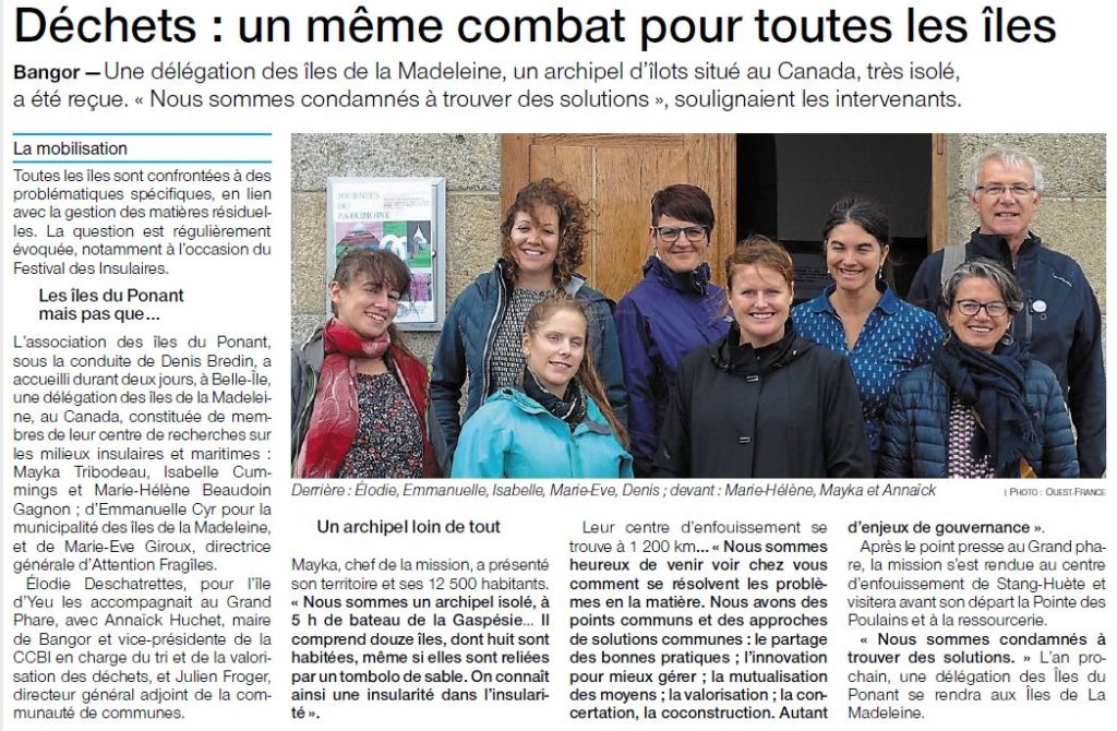 Dans le cadre de la 67ème biennie 2019-2020, L’association les Îles du Ponant et le CERMIM ont obtenu un soutien de la coopération franco-québécoise pour un programme d’échange ayant pour thématique : enjeux/solutions de réduction des matières résiduelles des îles.
