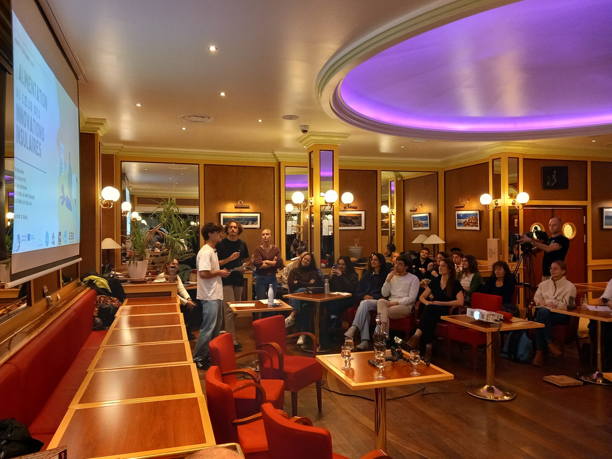 A 19h, se tenait ensuite une table-ronde portant sur l’alimentation insulaire, à l’hôtel Vauban (Brest), où les étudiants du master EGEL (UBO) nous ont présenté une synthèse de leurs travaux sur le sujet, avant d’animer un échange avec trois personnalités qualifiées :